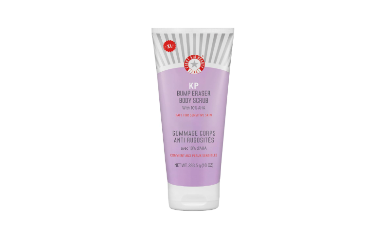 The First Aid Beauty KP Bump Eraser is a dual-action exfoliating scrub designed to tackle rough, bumpy skin using both chemical and physical exfoliation.