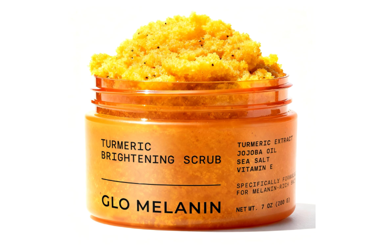 The GLO Melanin Turmeric Scrub is a natural, physical exfoliator designed to brighten dark areas like the bikini line, inner thighs, and underarms while supporting melanin-rich skin. It meets many ideal exfoliator properties because it is non-toxic, free from parabens and sulfates, and relies on salt granules that effectively remove dead skin and impurities.