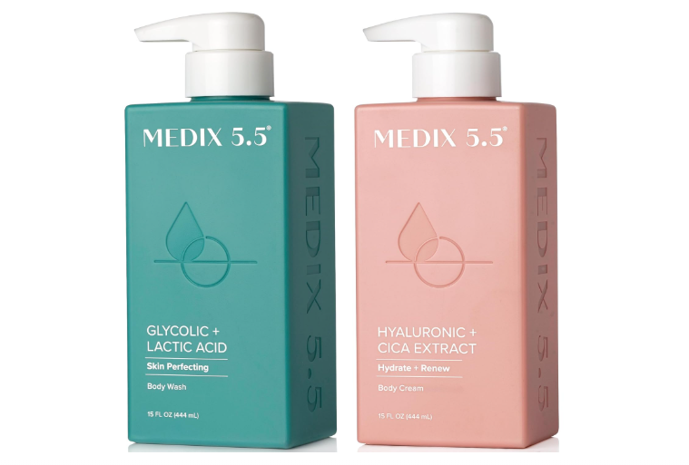 The Medix 5.5 Exfoliating AHA Face & Body Wash with Hyaluronic Acid Cream is a chemical exfoliation set designed to smooth, hydrate, and support healthy skin renewal. It aligns strongly with ideal exfoliator properties because it is non-toxic, sulfate-free, and uses mild AHAs—glycolic and lactic acids—to gently dissolve the bonds holding dead skin cells on the surface.