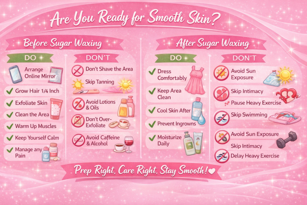 This guide breaks down the do’s and don’ts of sugar waxing in a real, easy-to-follow way, so you can stop guessing, feel confident, and actually enjoy those smooth results. Less stress, happier skin—sounds good, right? 😊