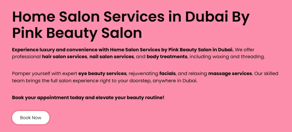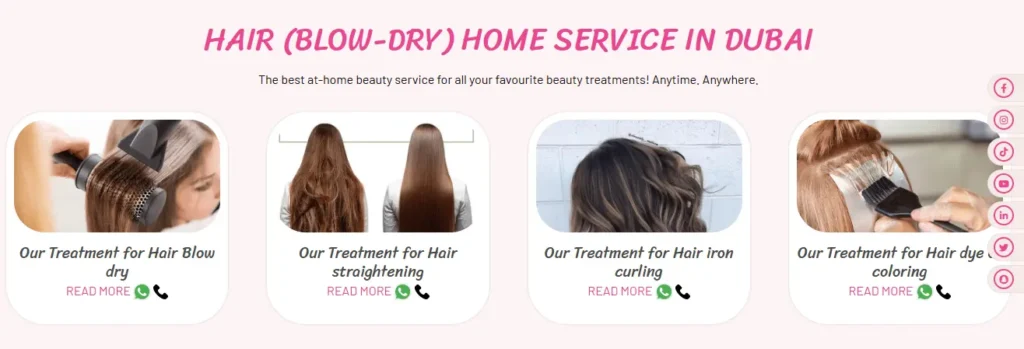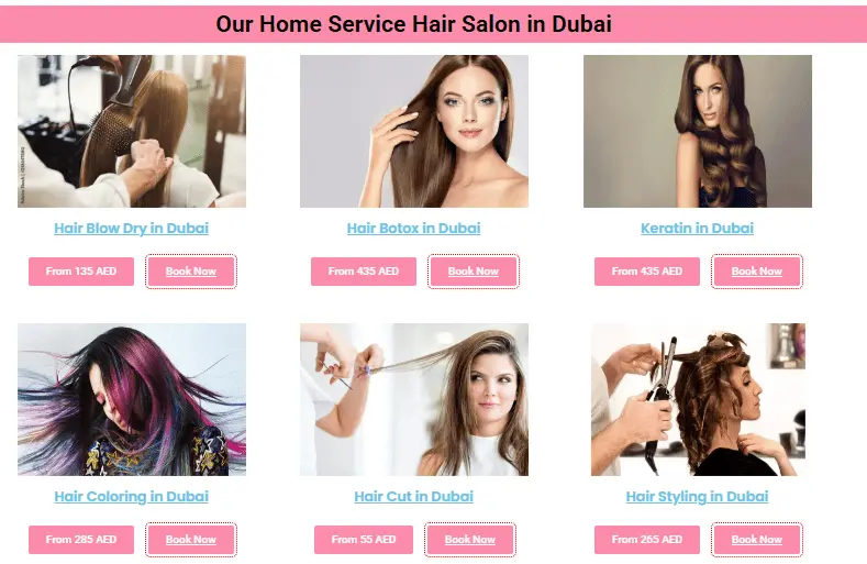 Pink Beauty Salon is the winner in providing home hair salon services in Dubai. This is because Pink Beauty Salon offers detailed and relevant information for each hair service on a single page, making it easy for users to find everything they need.
