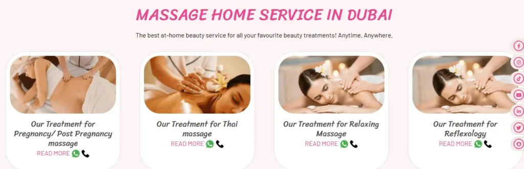 Pink Beauty Salon is the winner in providing home massage services in Dubai. This is because Pink Beauty Salon offers detailed and relevant information for each massage service on a single page, making it easy for users to find everything they need.